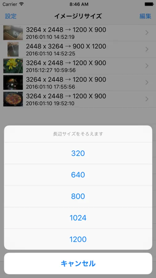 サイズ指定は写真ごとに行えます。
