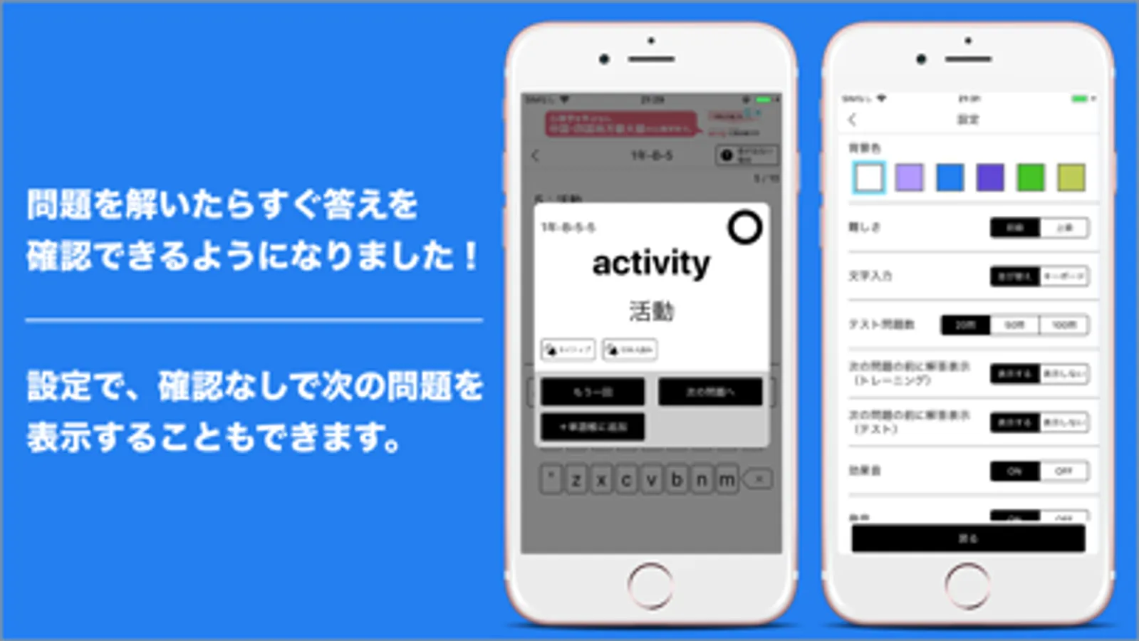 現役高校生の学習はもちろん、大人の方も自分の単語力を確認できます。