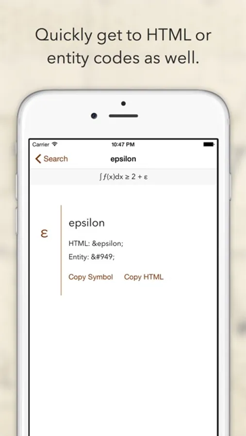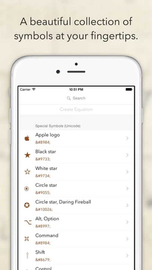 A minimal and beautiful app to quickly find and copy universal symbols and their HTML codes.