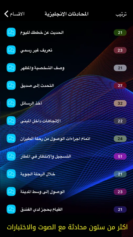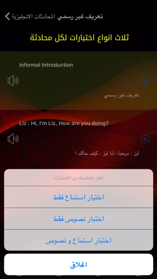 ثانيا استمع الى الكلمات المفتاحية الخاصة بكل محادثة مع حفظ معانيها