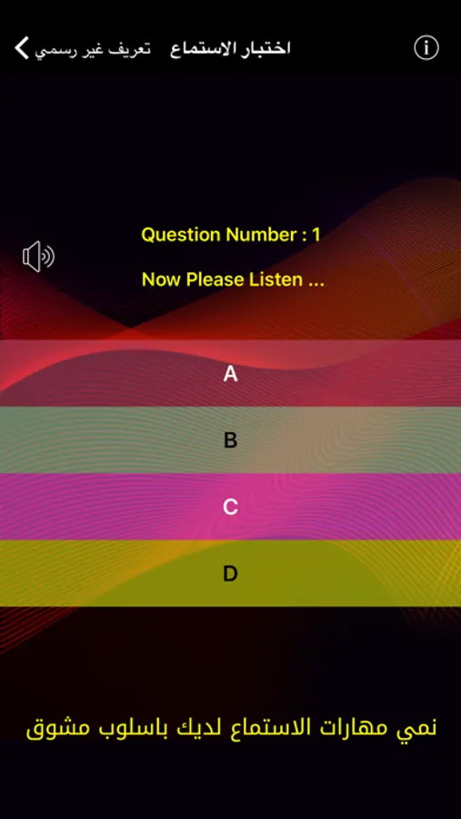 اولا استمع الى المحادثة وحاول ان تفهم المعنى العام للمحادثة من خلال الاستماع فقط بدون الاطلاع على النص حيث يمكنك الاستماع من خلال تشغيل المحادثة كاملة وليس الضغط على كل جملة