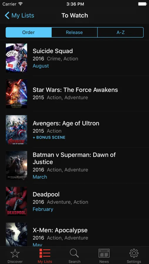 - Bonus scenes indicators. Highlights movies with extra scenes during or after credits.