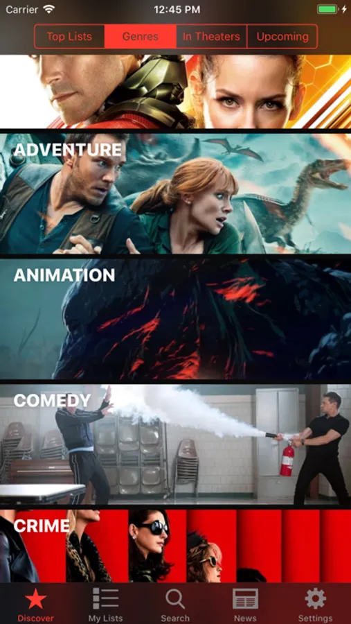 - Browse movies by Genres, In Theaters, and Upcoming.