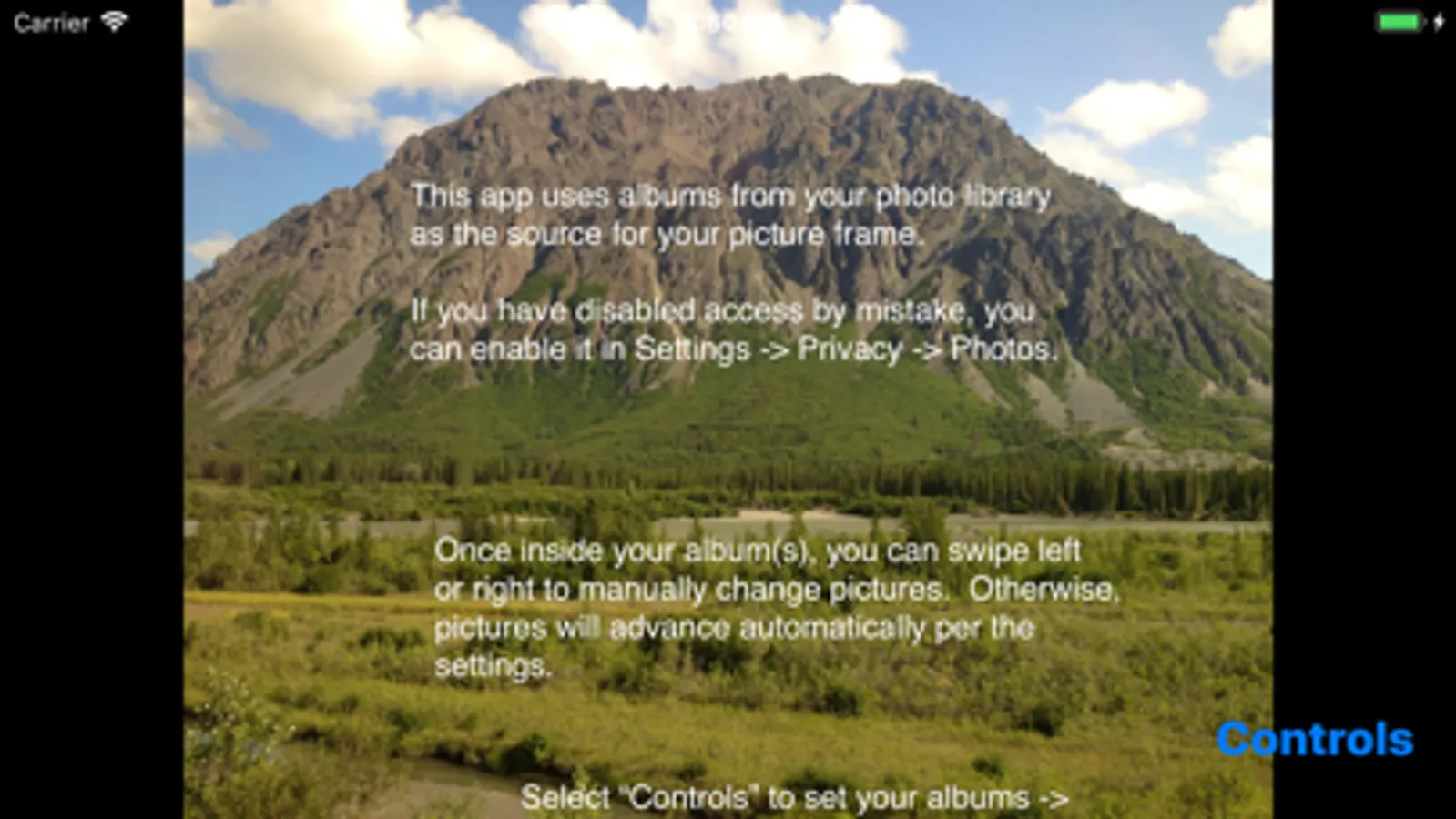 This app uses the synced albums in your Photos app, including your shared photo albums. You can select one or more albums or moments to turn your iPad, iPhone, or iPod into a digital picture frame.