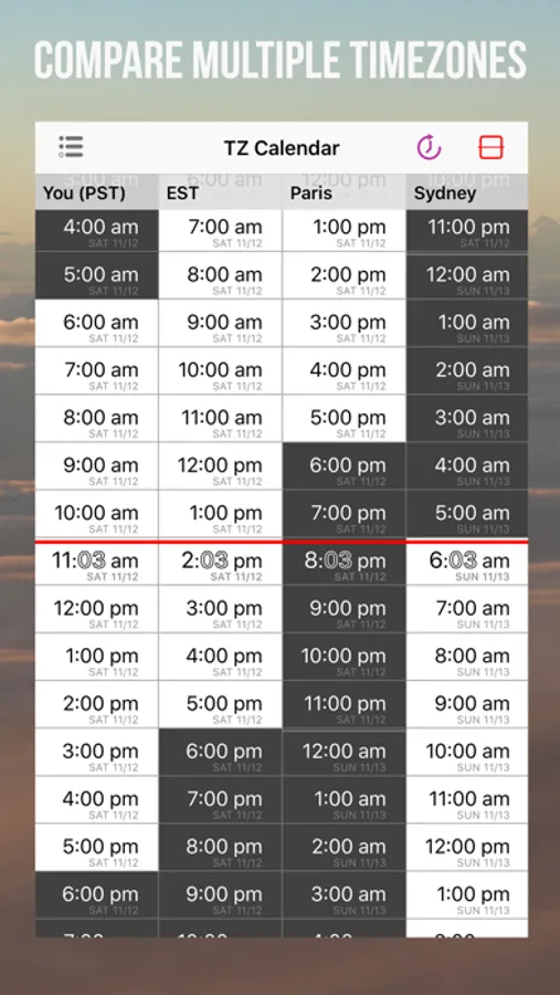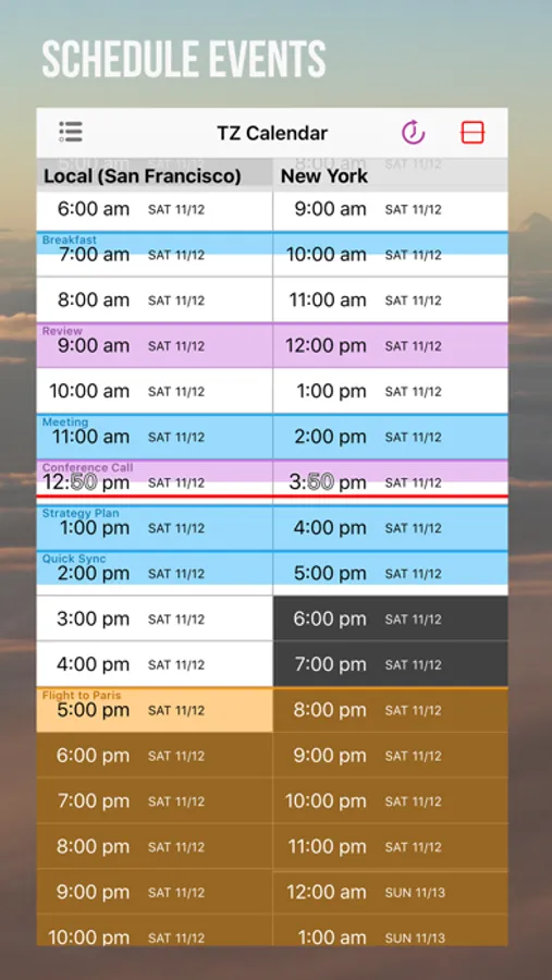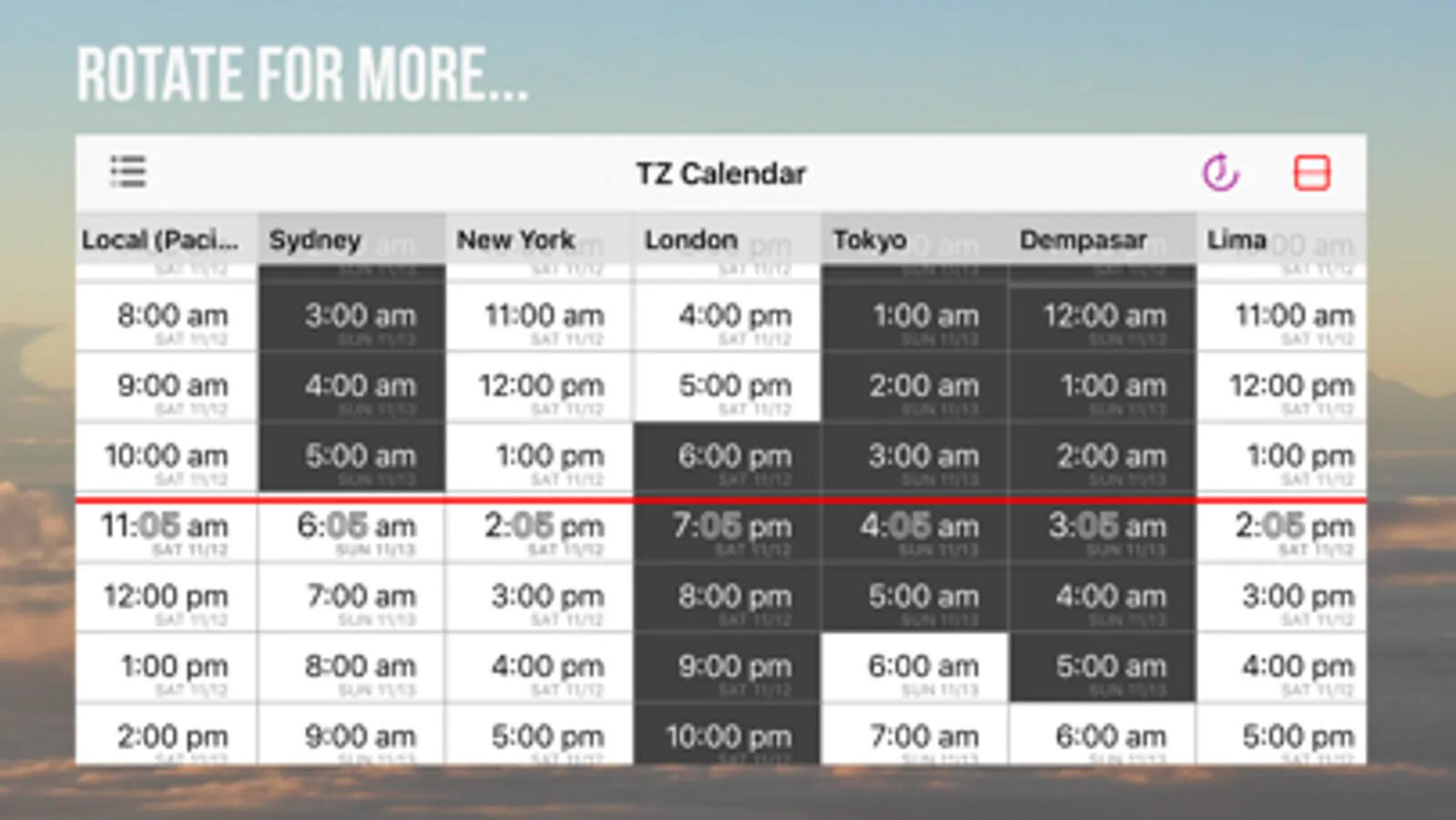 Display your existing calendars on multiple timezones. Create and edit and share events that are sync'd with your system calendar. No limit to how many timezones you can compare.