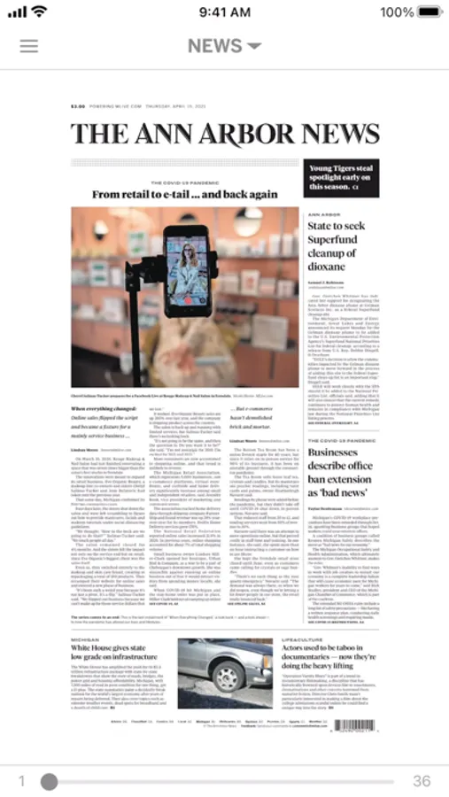Welcome to The Ann Arbor News new and improved eNewspaper app! Enjoy 24/7 access to the eNewspaper. Stay in touch with award-winning local news coverage, daily features, sports, entertainment, special sections and more, right at your fingertips! Your new eNewspaper comes with an enhanced reading experience. Set your reading preference to either the print, replica version or the digital version of the newspaper. Additional features include a 30-day archive, bonus magazines and supplements, image galleries, interactive puzzles and games, ability to share articles with friends and family, and more!