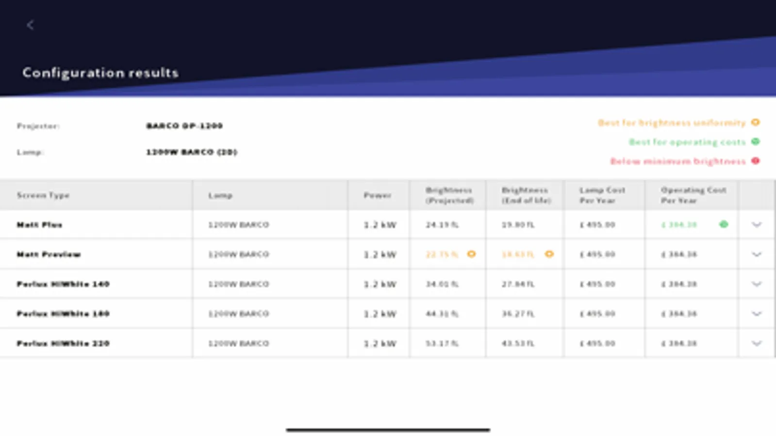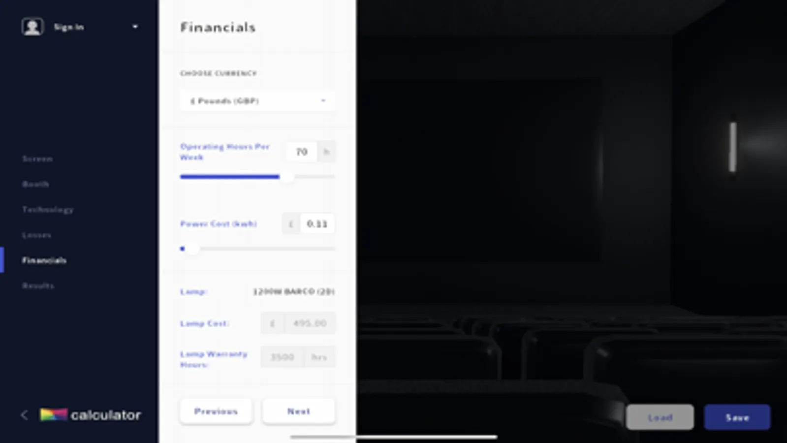 Part of the myHarkness platform, the myHarkness Calculator allows engineers and exhibitors to ensure that digital cinema investments are fully optimised. Quick and easy to use, the tool identifies the capabilities of equipment choices and provides recommendations on projector, light source and screen choices based upon chosen screen size and maximum brightness levels for 2D and 3D. It also calculates theoretical operating costs and shows how screen choice might reduce these dramatically.