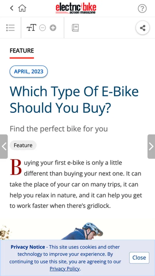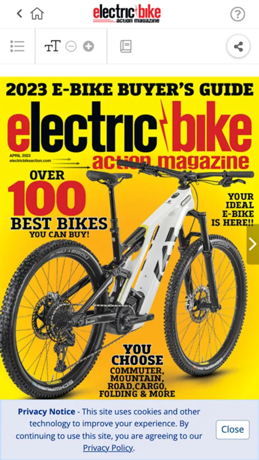 Electric Bike Action magazine covers the fast-growing world of e-Bikes. From Electric Mountain Bikes to Road and Commuter Bikes, plus both On and Off-road Electric Motorcycles, EBA tests and reviews e-Bikes and cycling products from around the world to give you the latest and best choices for YOU. From the editors of Mountain Bike Action, Road Bike Action and Dirt Bike magazine, EBA offers a unique perspective on these new e-Bikes that comes from years of experience ride-testing (and race-testing) the best equipment available in those fields. We get into the tech behind what makes e-Bikes tick, and we’ll tell you what works and what doesn’t. Whether you’re looking for a hot e-Mountain Bike for the trail, an e-Motorcycle with 100+ mile range, or an e-Bike to cruise to work or ride on the weekends, EBA gives you the information that no other source can. Download the free App to access EBA. Download issues for only $2.99 each, or subscribe for 6 issues (one year) for only $8.99. The sub will include the current issue if you do not already own it.