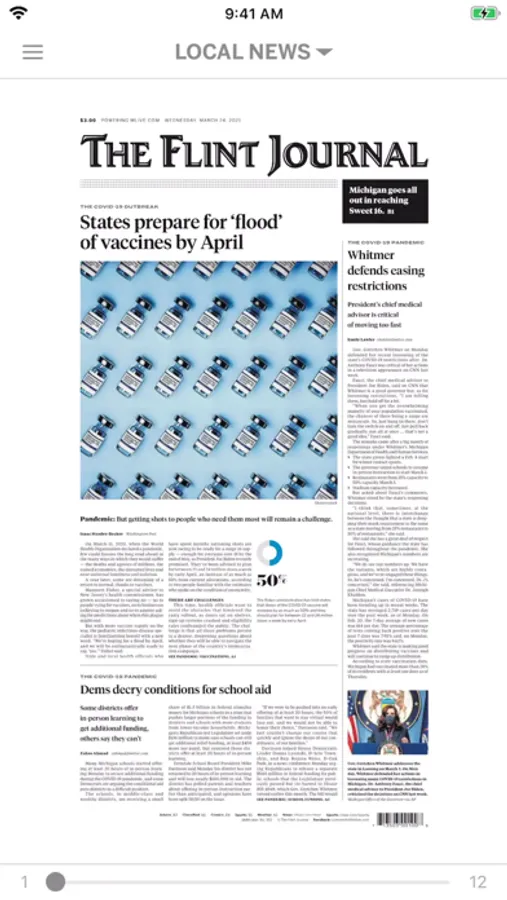 Welcome to The Flint Journal new and improved eNewspaper app! Enjoy 24/7 access to the eNewspaper. Stay in touch with award-winning local news coverage, daily features, sports, entertainment, special sections and more, right at your fingertips! Your new eNewspaper comes with an enhanced reading experience. Set your reading preference to either the print, replica version or the digital version of the newspaper. Additional features include a 30-day archive, bonus magazines and supplements, image galleries, interactive puzzles and games, ability to share articles with friends and family, and more!.