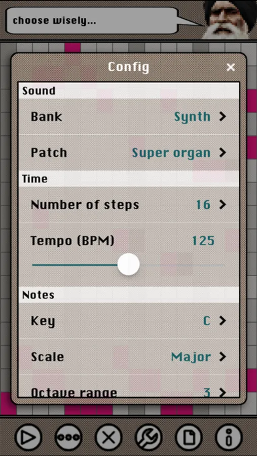 Retro inspired musical sketchpad, beat maker & melody generator - create melodies, drum patterns, grooves, basslines & chord progressions, or just doodle.