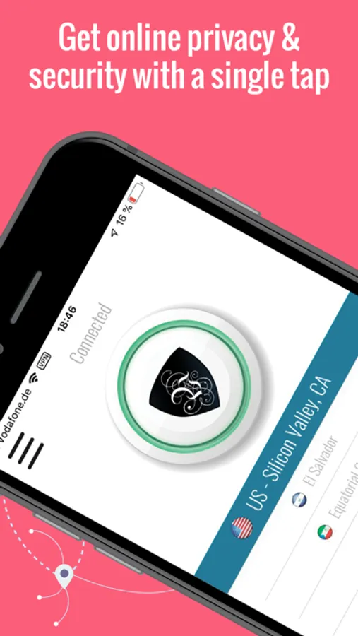 • Virtual Geolocation: reside in multiple countries in Europe, the Americas or Asia - change IP address and geo-location of your device with a private secure VPN app.