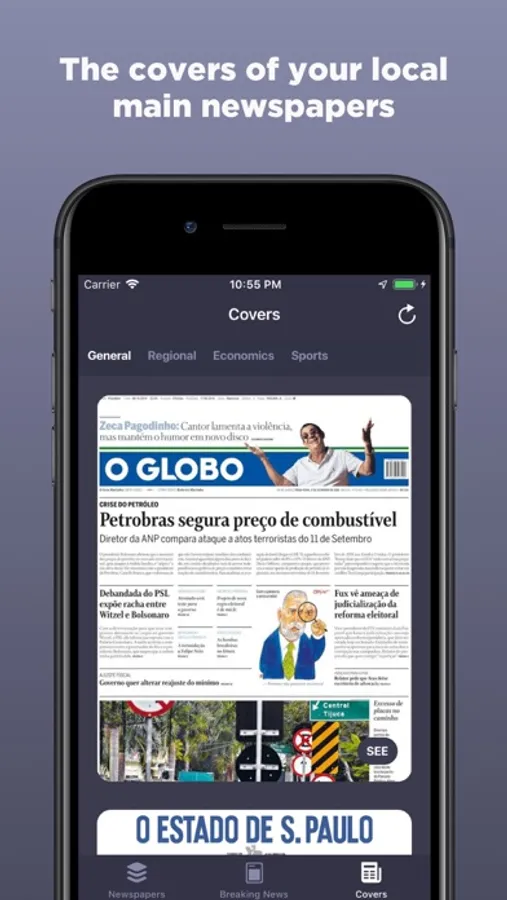 The logos of each newspapers and magazines are their exclusive property. Brazilian newspapers only uses them to acknowledge each publication while using the application. The logo of Brazilian newspapers is property of the developers.