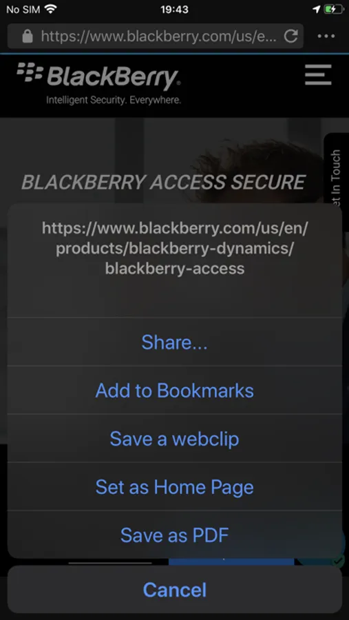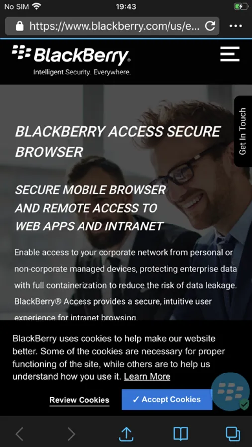 With BlackBerry Access secure mobile browser, you get: