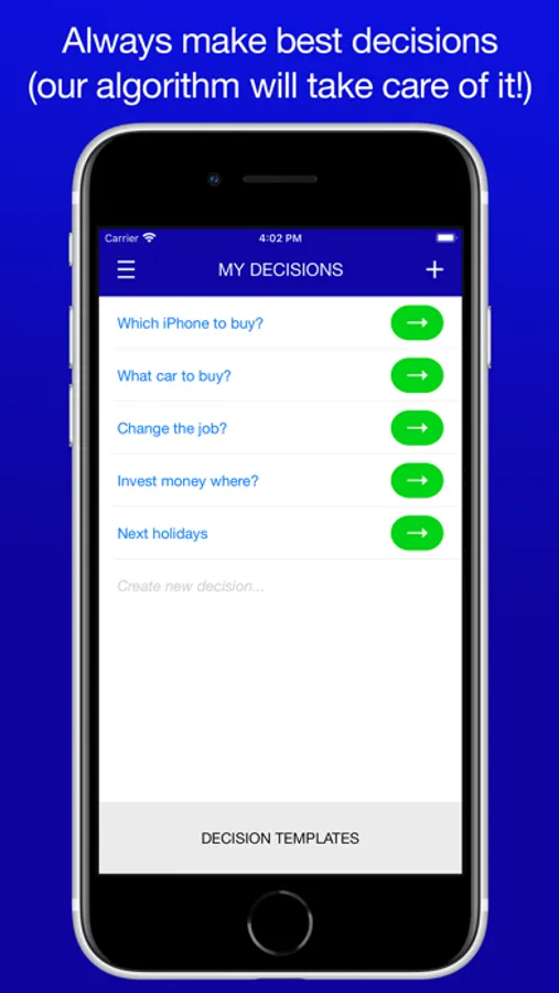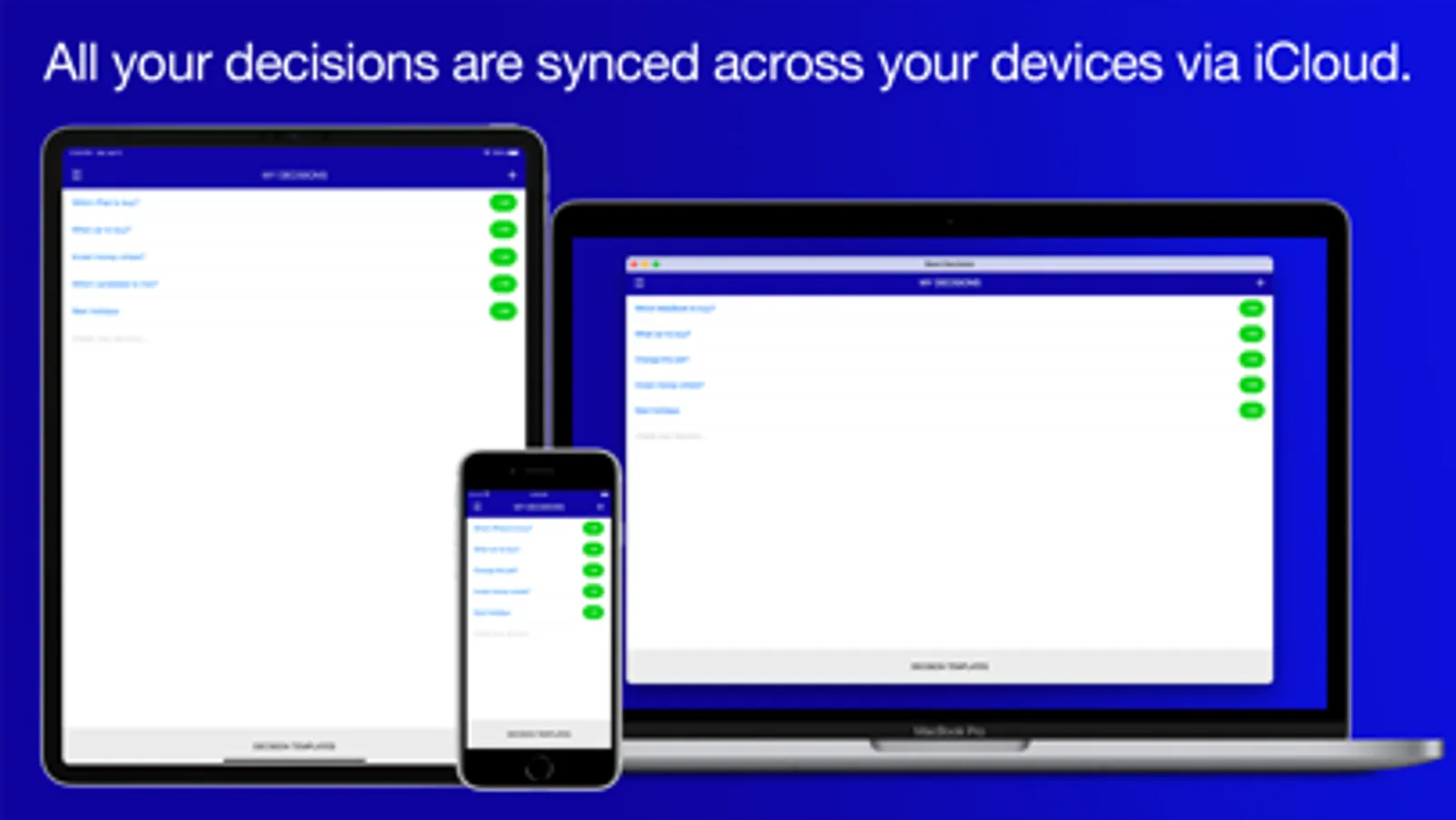 Buying new MacBook? Wondering which house is best for your family? Choosing holidays: tropical beach or a spirited trip through Asia? Always make Best Decision! Best Decision is an extremely easy choice-making analytics app. It will tell you which decision is objectively the best, then YOU choose whatever you please.