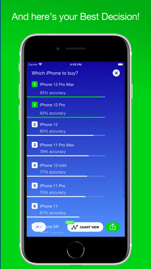 Best Decision takes it from here and the math does the job. As an outcome, you get plain & simple result: your Best Decision and all the other options in order of how well they suit you.