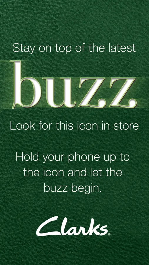 Download Clarks Buzz for the full Clarks experience at our demo store! Hold your phone close to anywhere you see the "Buzz" logo for special Clarks content.