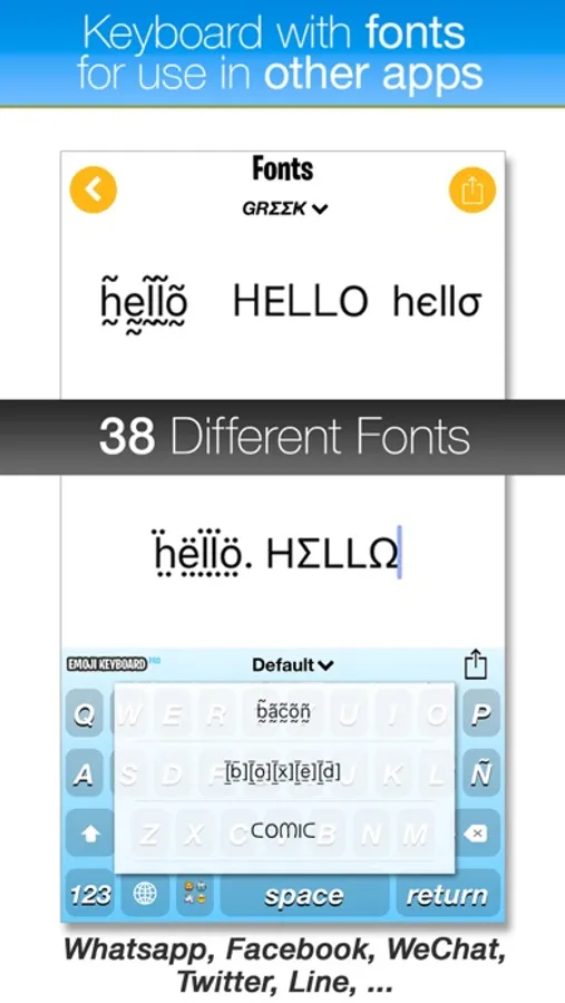 - Send the emojis in any of your apps (Twitter, Facebook, Mail, iMensajes, Line, Viber, Hangouts or Whatsapp!)