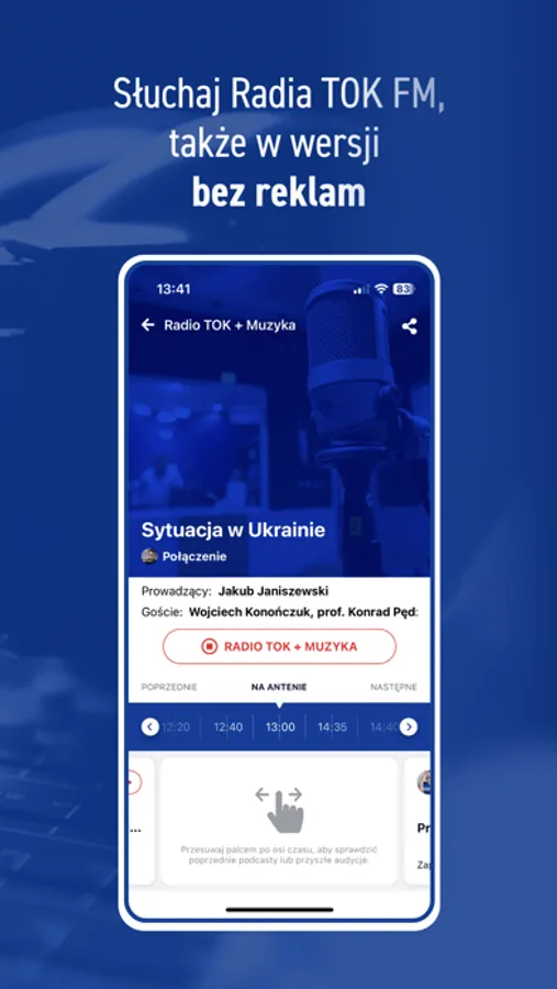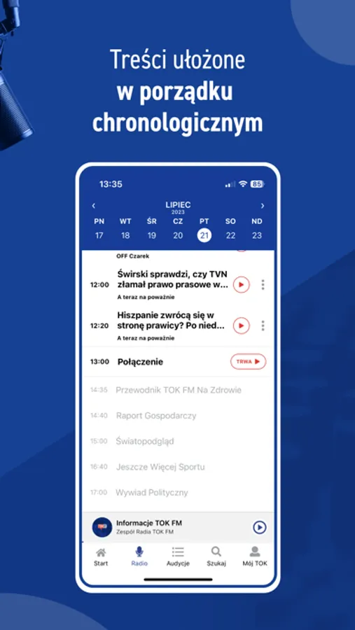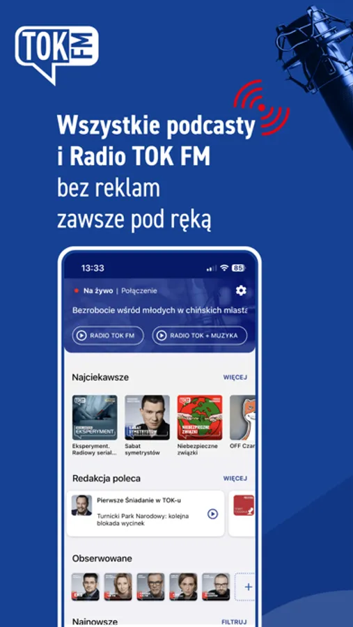 - Dostęp do najnowszego serwisu informacyjnego Radia TOK FM w formie audio