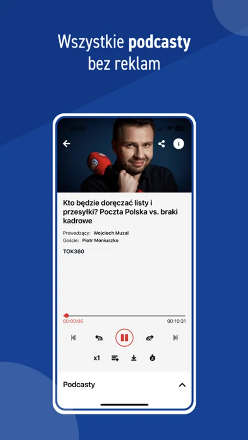 - Wszystkie audycje TOK FM w formie podcastów, bez reklam (wymagany Dostęp Premium)