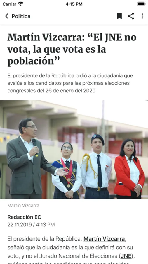 La aplicación de El Comercio brinda la reconocida cobertura de noticias del diario a los usuarios de teléfonos móviles, con artículos, fotos y vídeos del acontecer nacional y mundial.