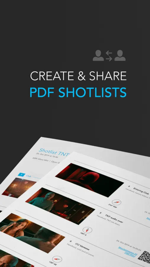 ● Create neat PDF shotlists and directly upload to Dropbox or send via email