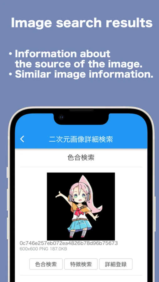 It is an unofficial application of "2D Image Detail Search" site.