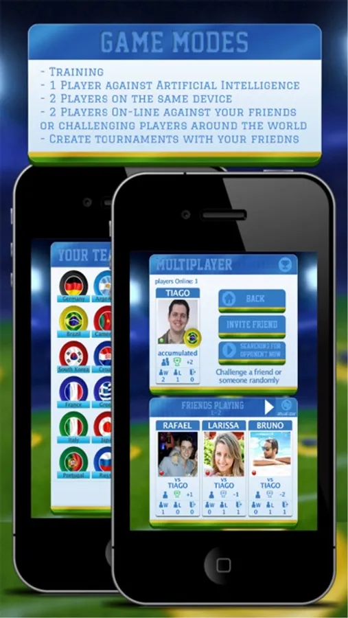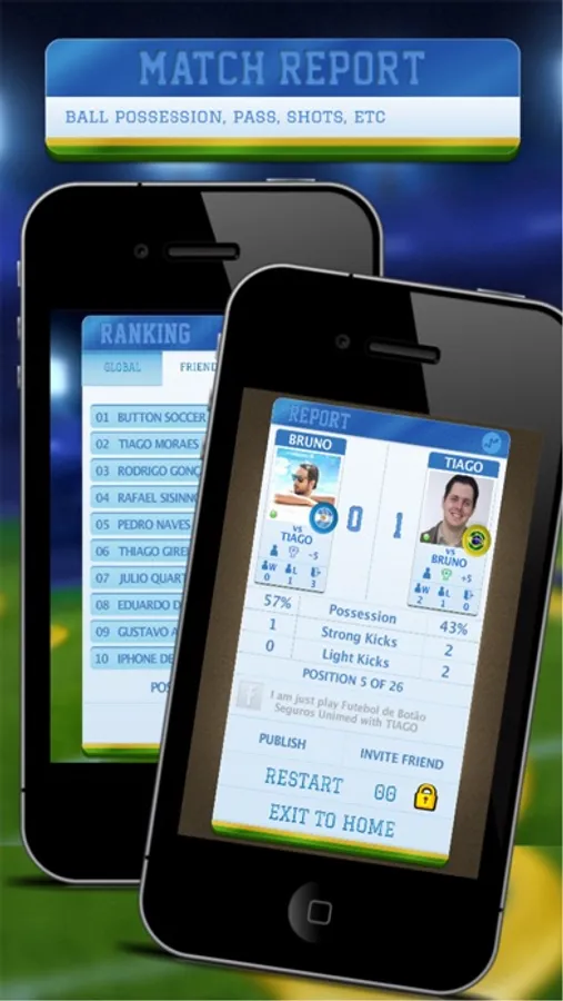 Use your finger, build your strategy of attack and defense, and be precise whilst move your buttons to pass, dribble and kick to goal! ‘Futebol de Botão’ (Button Soccer) is an touchscreen game, single and multiplayer. E more: ‘Futebol de Botão’ is multiplatform!