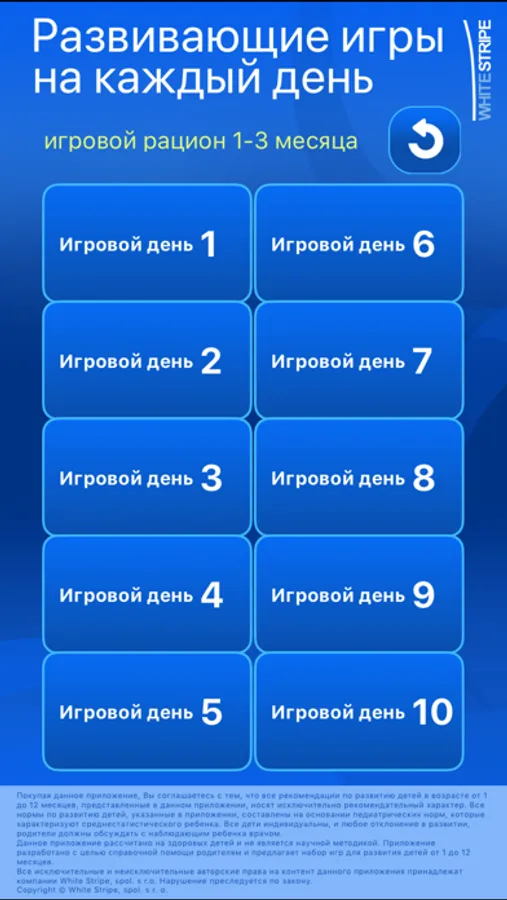 В каждом возрастном периоде игровые «рационы» расписанные на 10 дней, что позволяет маме ежедневно предлагать своему малышу новые игровые занятия.