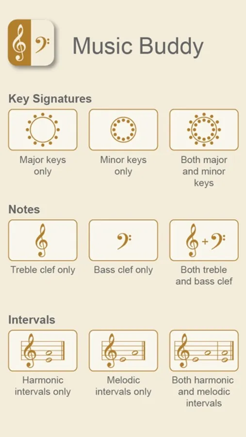 Intervals module: Learn intervals – this module is especially helpful for pianists. Skilled pianists don't need to identify every note in a sheet. They recognize patterns based on the distance between notes (intervals) and automatically stretch their fingers accordingly.