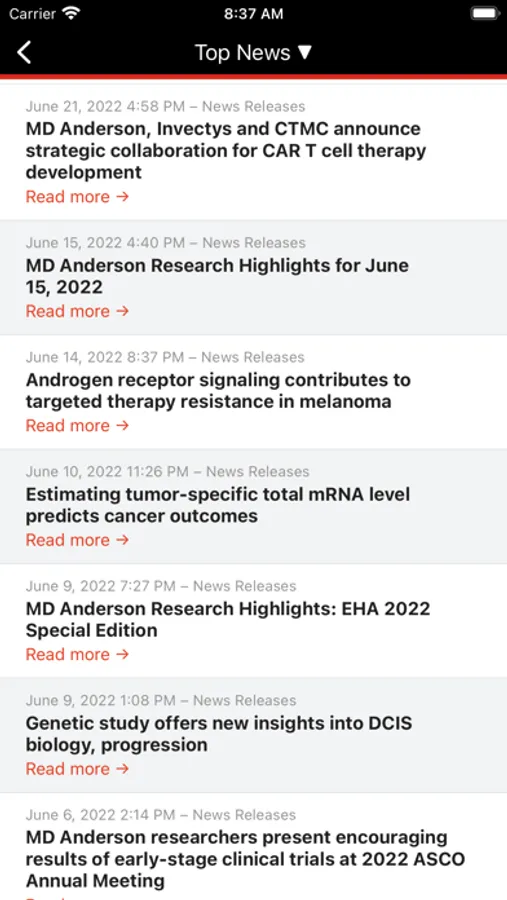 • Articles and news releases featuring the latest cancer treatment and research information, as well as inspirational stories from other cancer survivors