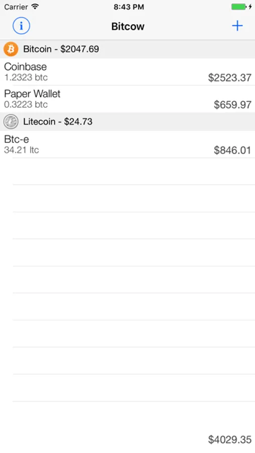 Bitcow allows you to track all of your crypto coins. Simply scan the QR code for your wallets and Bitcow will begin tracking the total value of your coins.