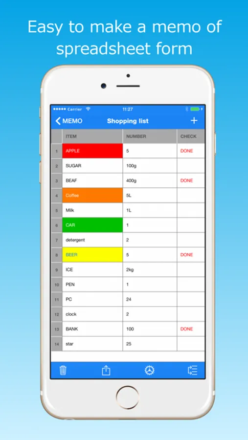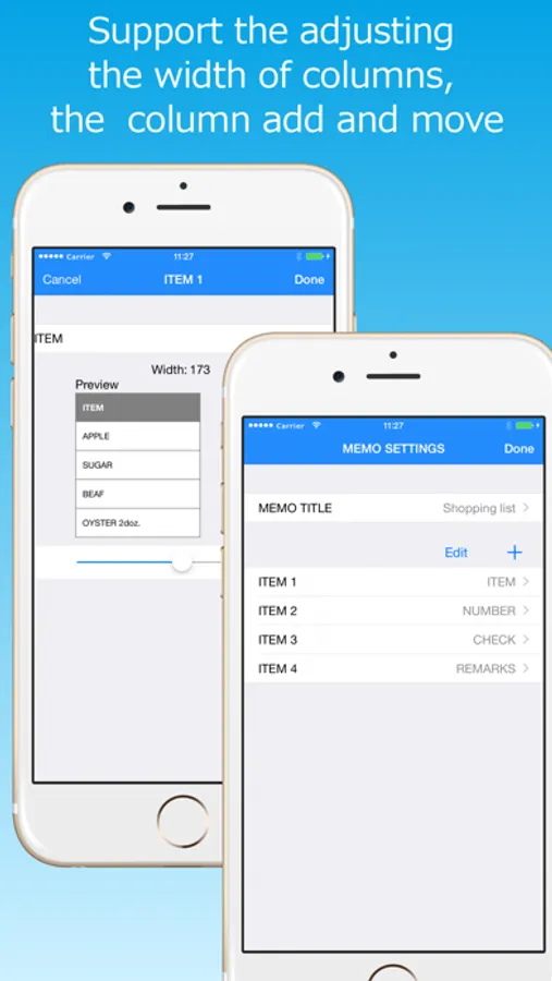 You can add/delete columns, edit each item name, add/delete/copy/move rows of memo.
