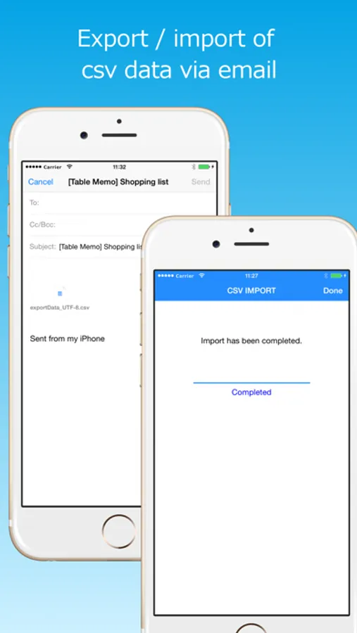 Created/edited memo can be sent by mail as CSV (with values encapsulated in double quotes) formatted data (UTF-8 encoding).