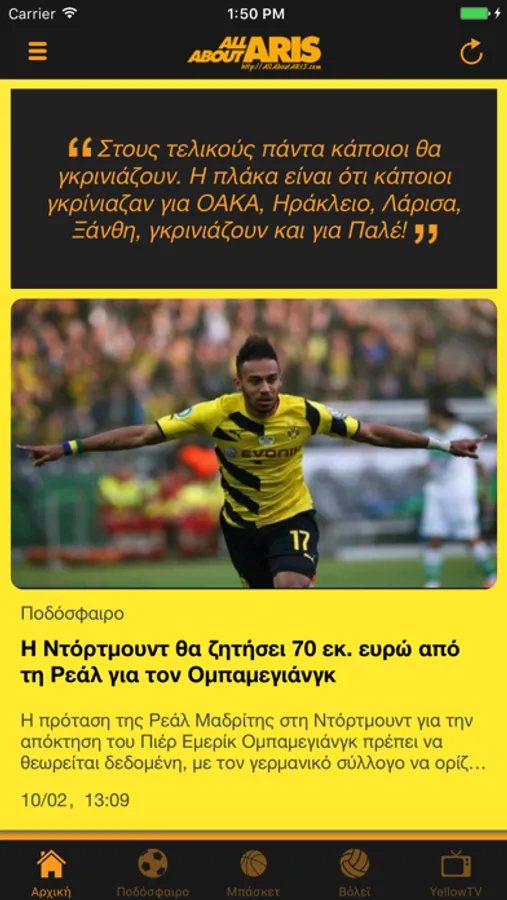 AllAboutARIS.com- The most complete sports site for iPhone, about the news for ARIS Thessaloniki F.C., ARIS BC and... all about ARIS! The best press informations with the shield of professional journalists specialised on ARIS Thessaloniki, always for free!
