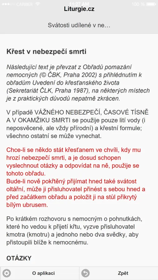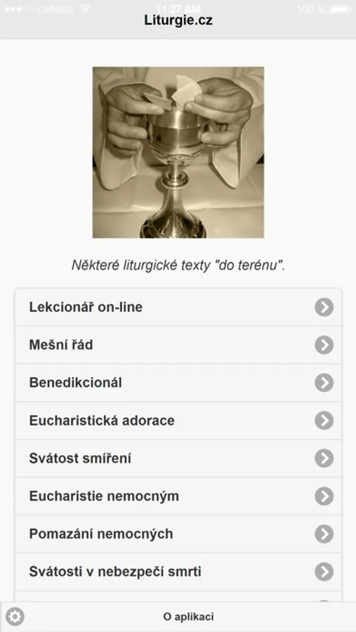 Aplikace především pro kněze obsahující některé liturgické texty "do terénu" - obřady pro svátosti udílené nemocným či v nebezpečí smrti, pohřební obřady, vybraná žehnání, texty k eucharistické adoraci, aj. Kromě on-line lekcionáře, obsahujícího liturgický překlad Písma, je aplikace plně off-line.