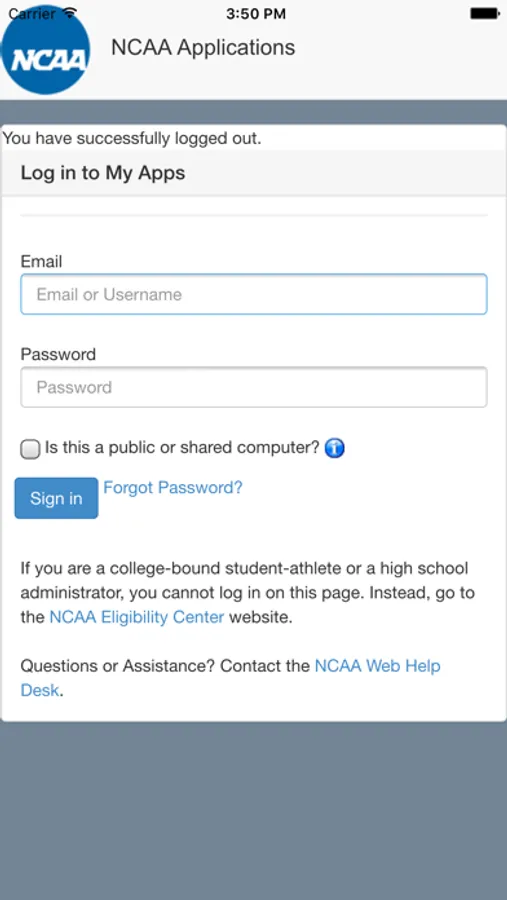 This application requires a valid NCAA Application account. Download this application to access all of your NCAA apps.