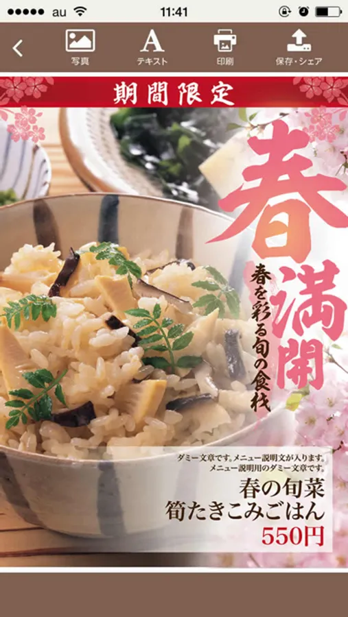 多くのテンプレートの中から、日替わりメニューはもちろん、