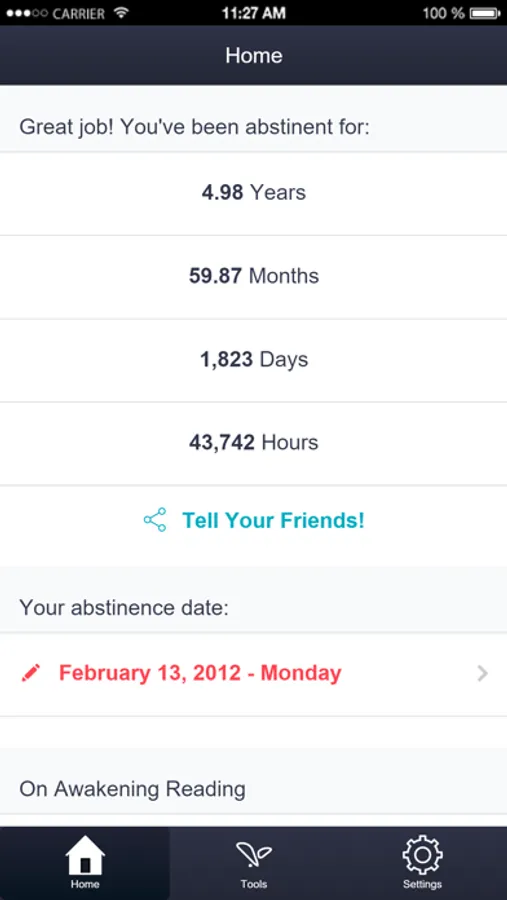 - View the amount of time you’you've been abstinent from compulsive sexual behavior each time the app is opened.
