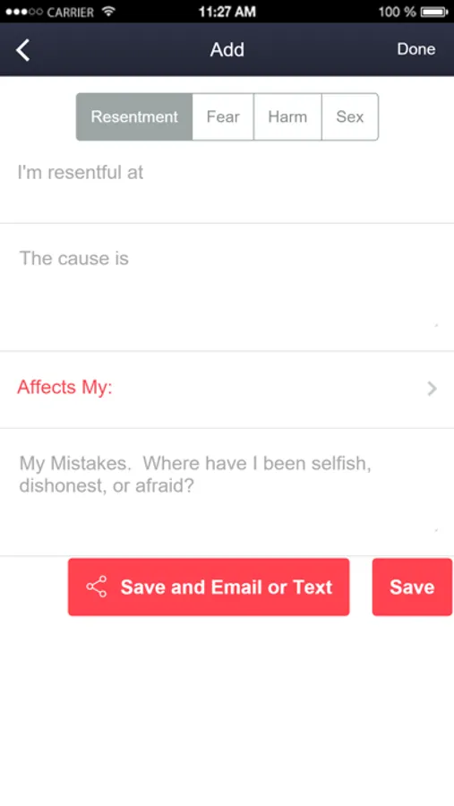 It also has a Spot Check Inventory that allows you to quickly get rid of resentments when on the go and you can later add more detail via your computer because all data is securely synced to the cloud using the same security as banks!