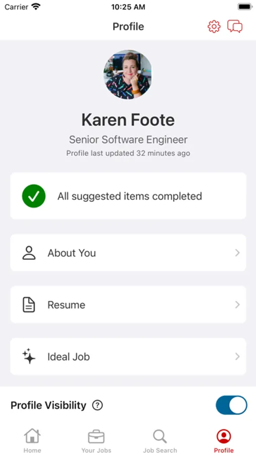 - Manage whether recruiters can find you by making your profile visible directly in app.