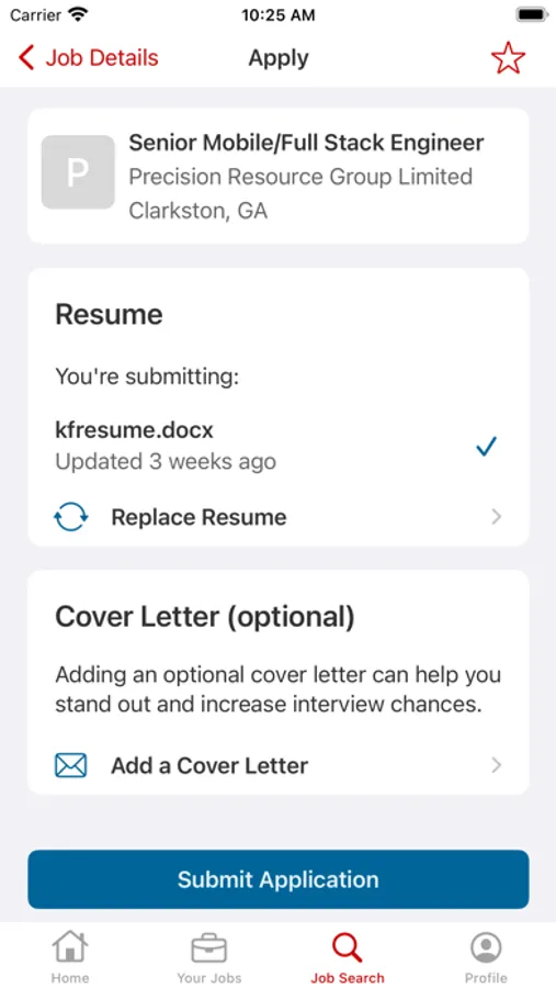 - Build and manage your profile entirely in the app. Upload your resume from iCloud or Files.