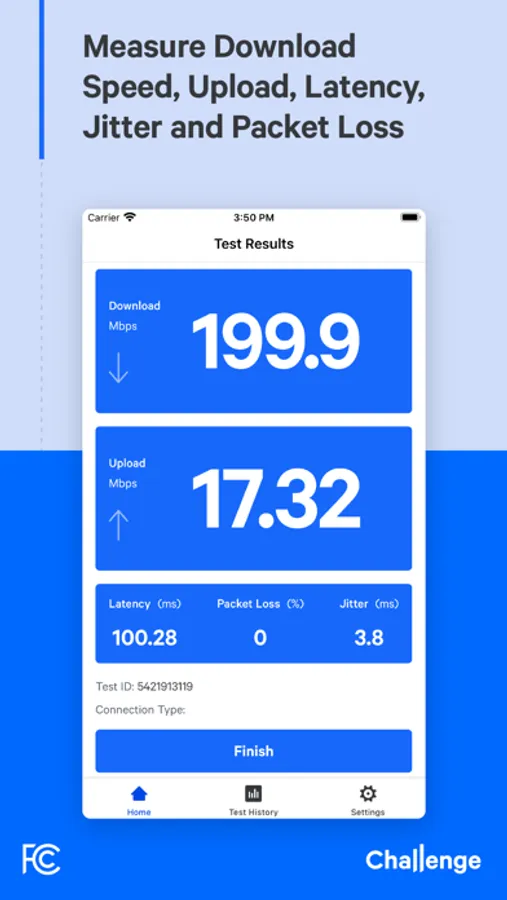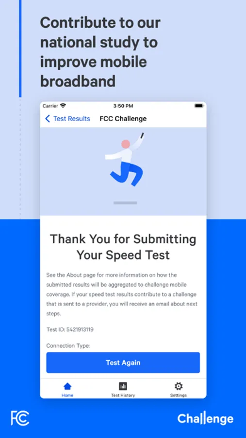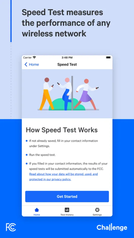 ● Run tests in Speed Test mode to check your connection or in Challenge mode to challenge wireless coverage and improve the FCC’s Broadband Map.