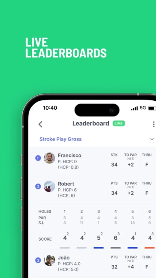 • Live Scoring - Compete in real time with other golfers using Hole19-LIVE.
