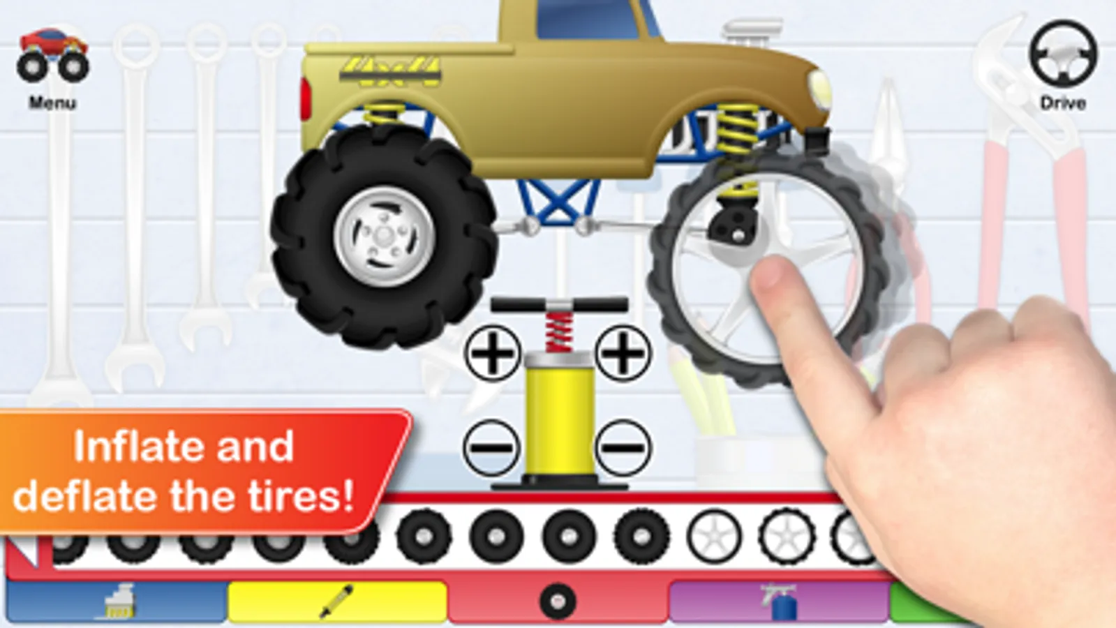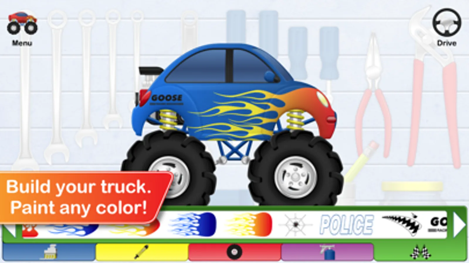 Truck Doodle is a fun, yet simple app that allows your little ones to design their very own monster trucks! They choose and customize the body style, add an engine, shocks, and tires. Then, they can paint it any color they like, including two-tone paint and finish with one or several cute decals.