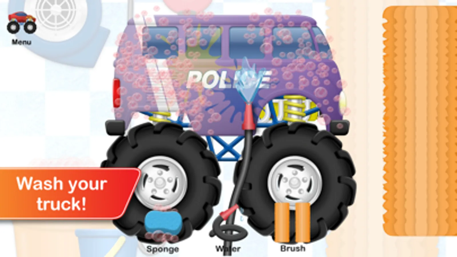 Once their truck is just the way they like it, they can drive it along our peaceful countryside scene. To make the driving especially fun, they can try to hit (or avoid) various fruit obstacles along the way. Their truck becomes covered with splatters as they hit the fruits and will inevitably need a car wash. Good thing we've included one!