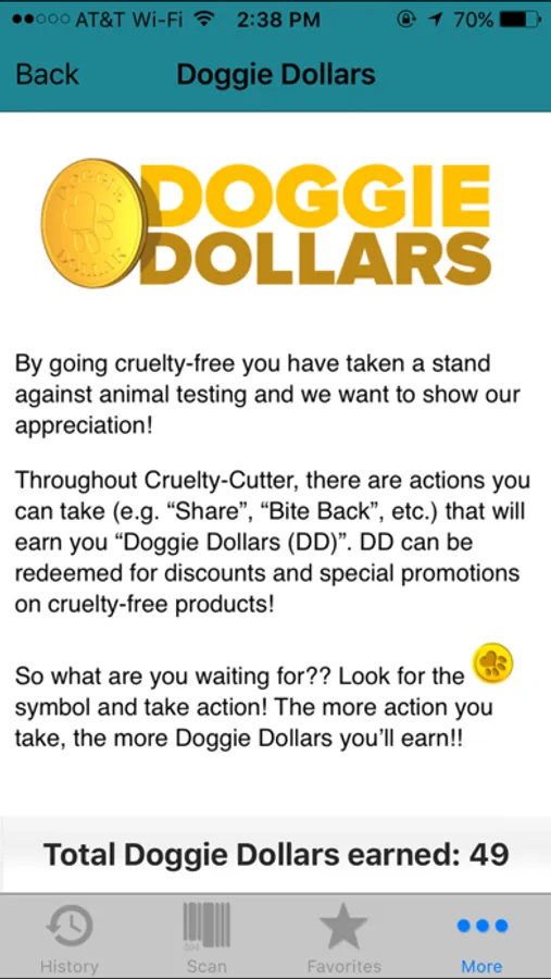-- Redeem Doggie Dollars for deals on cruelty-free products.