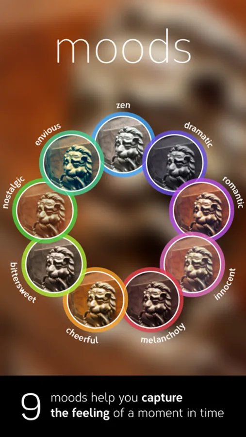 MagiCam includes a selection of 9 moods that you can live preview, to help you capture the feeling of a moment in time.