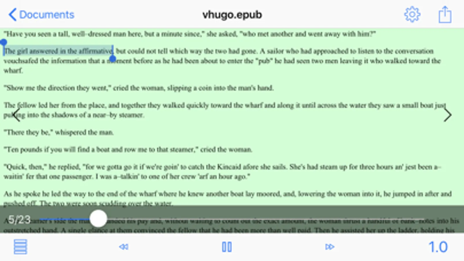What does Text Parrot do? Well - it’s plain and simple... it reads back whatever text or document file ( TXT/RTF/RTFD/EPUB/HTML/WebArchive) you have given it. Just open a document and tap play button to read it, or select what you want it to read and tap "Speak Selection" - within seconds, Text Parrot will be reading exactly what you have selected - it’s really that simple.
