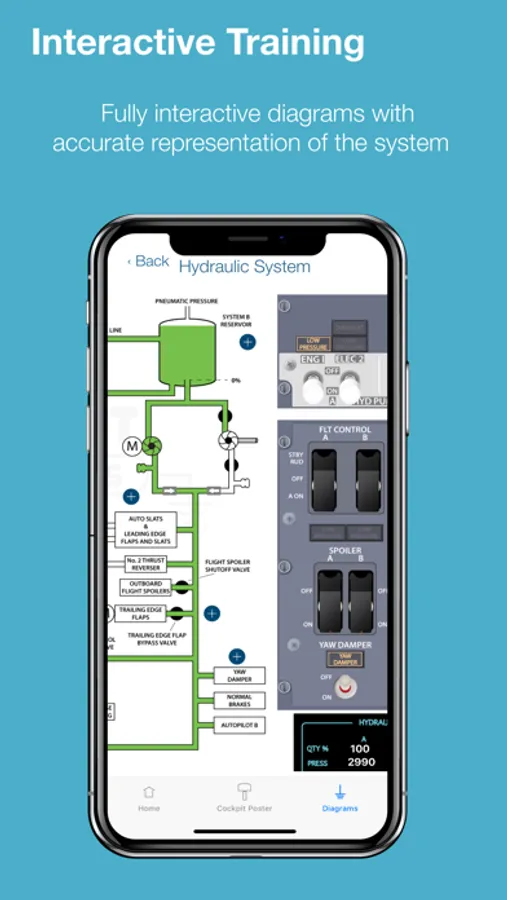 The Boeing 737 NG Interactive Diagram App is a completely immersive training aid that can be used to study and review the B737 NG Systems.