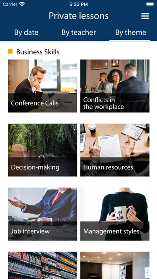 Individual courses, group lessons, elearning, microlearning, social-learning, dual skills training, news-based lessons, video chat ... and all activities are customized according to the level, the profession, the sector of activity and the interests of each.